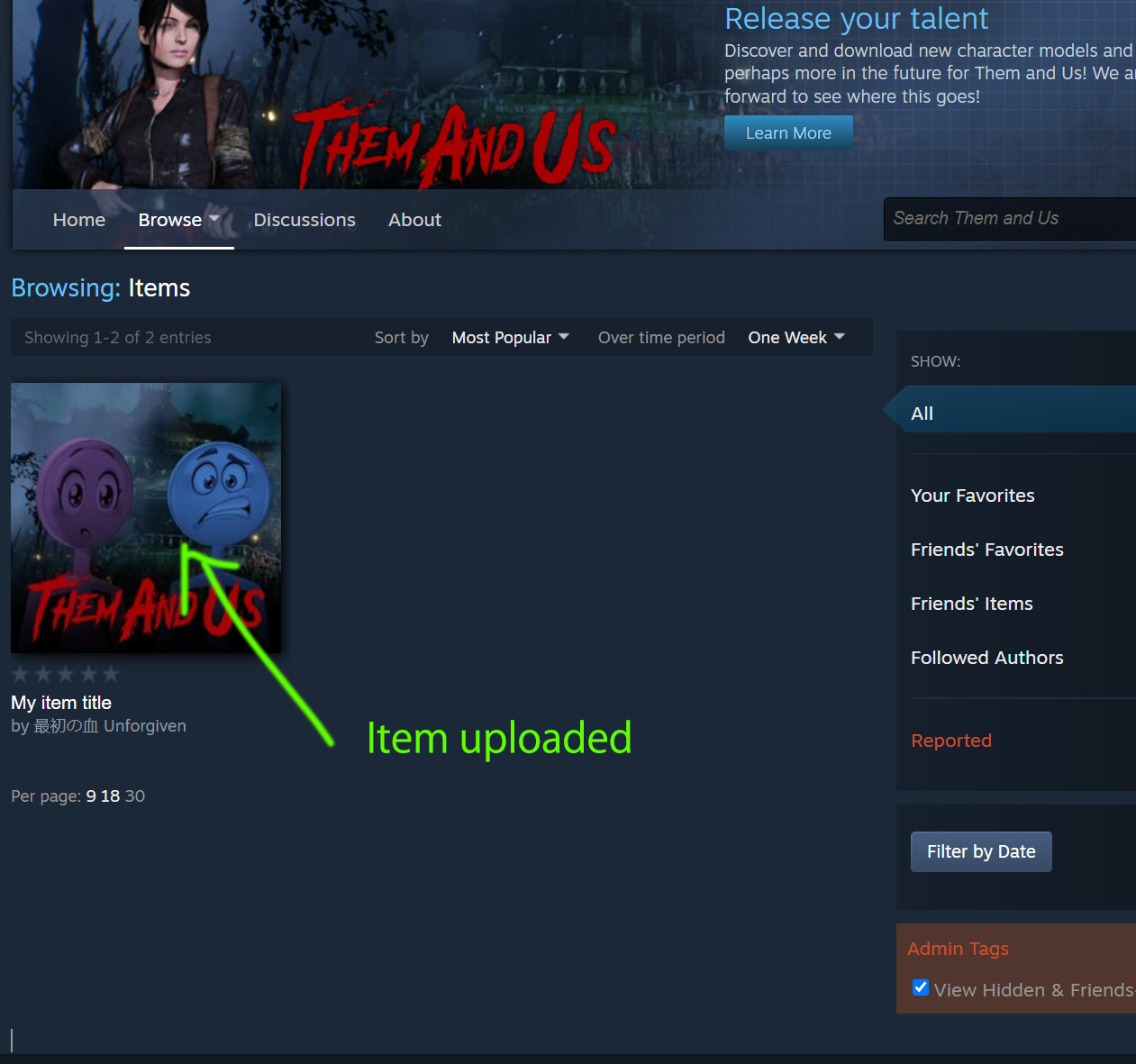 If everything is OK, time to upload your character to the STEAM Workshop for people to view it and vote it.